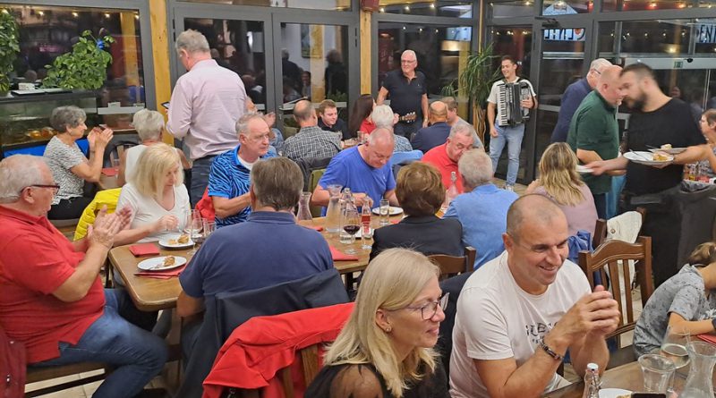 Lepo in toplo vreme za ta letni čas nas je presenetilo, saj napovedi niso bile najbolj obetavne. Vsi skupaj smo se nato dobili v Hotelu Center, kjer je Mitja, sin lastnika hotela Center, pripravil okusno piknik kosilo, pa tudi zvoki harmonike niso manjkali.