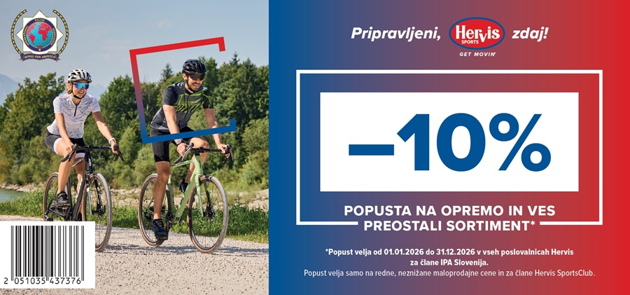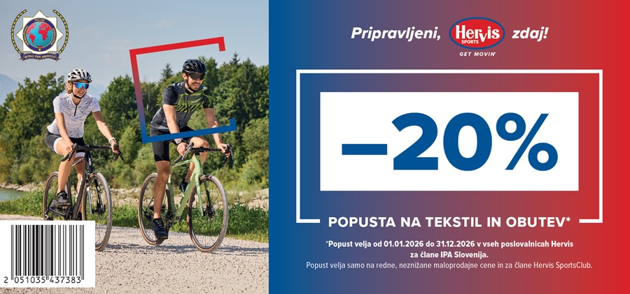 IPA klub Posavje in vsem dobro znano podjetje Hervis d.o.o. sta sklenila dogovor o sodelovanju, po katerem so članice in člani IPA v prodajalnah Hervis po vsej Sloveniji deležni posebnih ugodnosti, ki so razvidne iz spodaj pripetih in večkrat unovčljivih kuponov. Članice in člani lahko te posebne kupone koristijo ob sočasni predložitvi veljavne IPA članske izkaznice za 2026 in osebnega dokumenta oz. javne listine, ki jo je izdal za to pristojen državni organ in je opremljena s fotografijo.